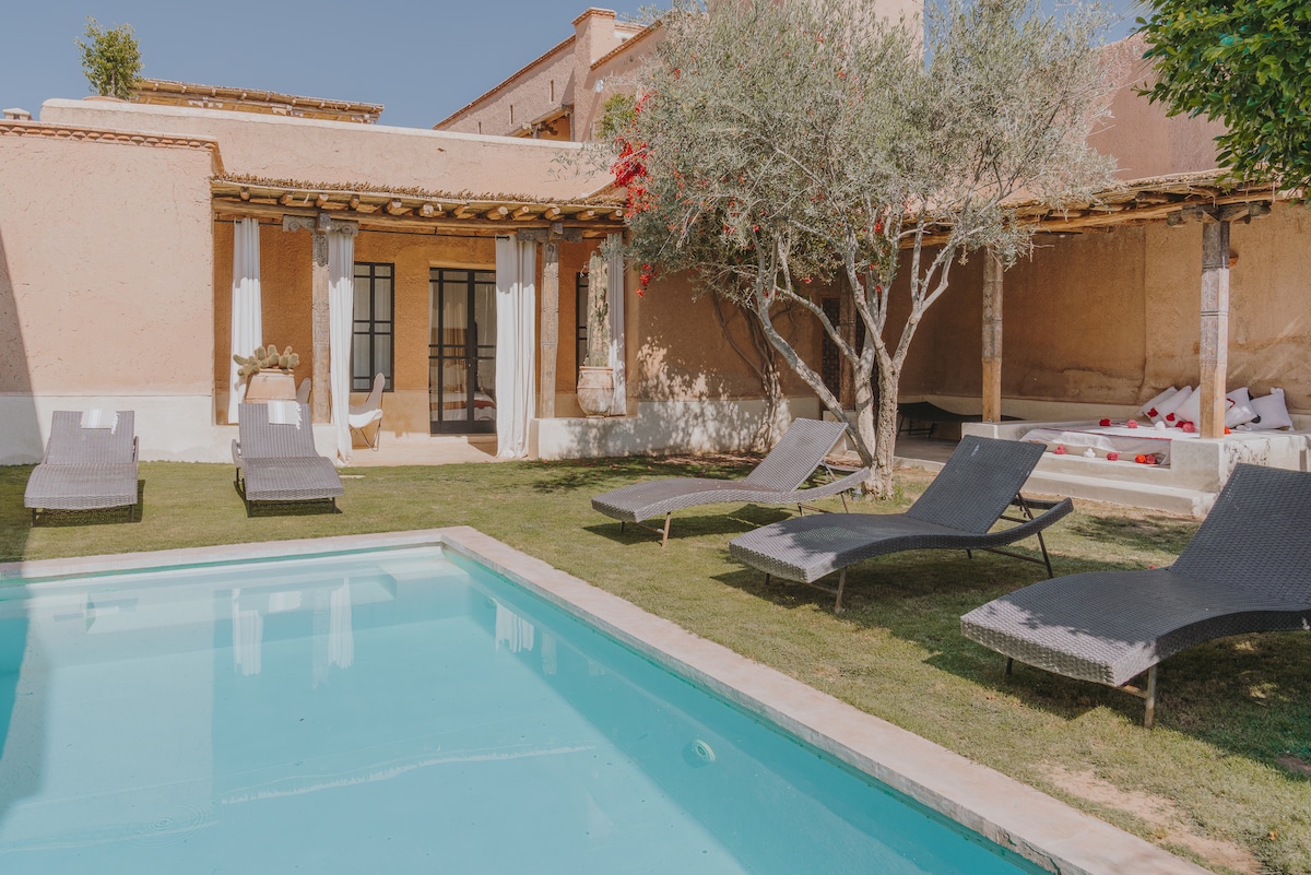 アトラス山脈の麓に位置する、オリーブ畑に囲まれた魅力的なオーガニックな家。マラケシュから30km。 ダール・ウリカは、プールとアトラス山脈の息をのむような眺めを備えた2000平方メートルの囲まれた庭園の中に位置する160平方メートルの伝統的なベルベル人のレンガ造りの家(4名用)です。