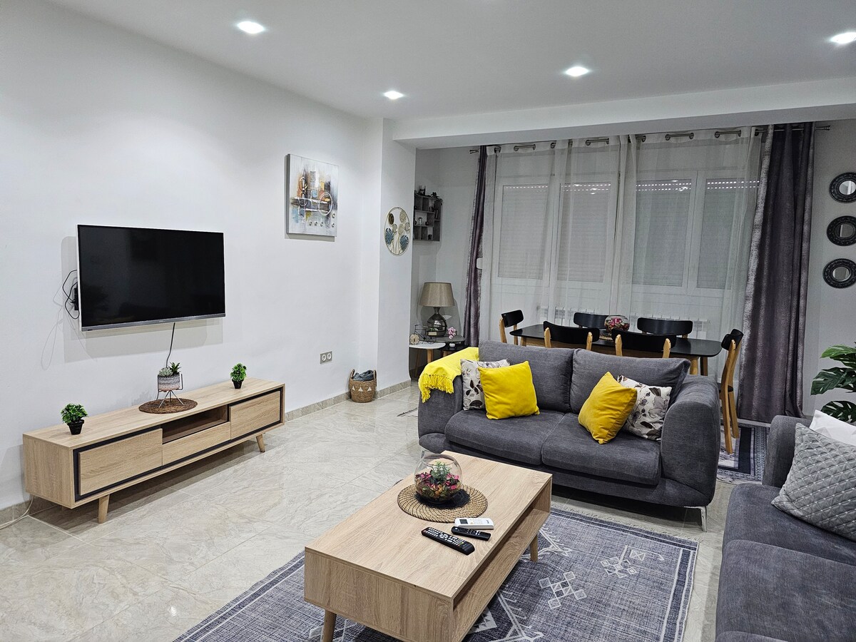 静かで快適なエル・アシュール地区にある私たちの快適なF3タイプのアパートへようこそ。快適さと静かな環境を求める旅行者に最適です。 アパートには以下のものが含まれます: 広々としたベッドルーム2室。 晴れた日を楽しむための広いテラス。 モダンで洗練された装飾の明るいリビングルーム。 オーブン、電子レンジ、コンロ、洗濯機など、設備の整ったキッチン。 機能的なバスルーム。 快適な温度を保つための2台のエアコン。