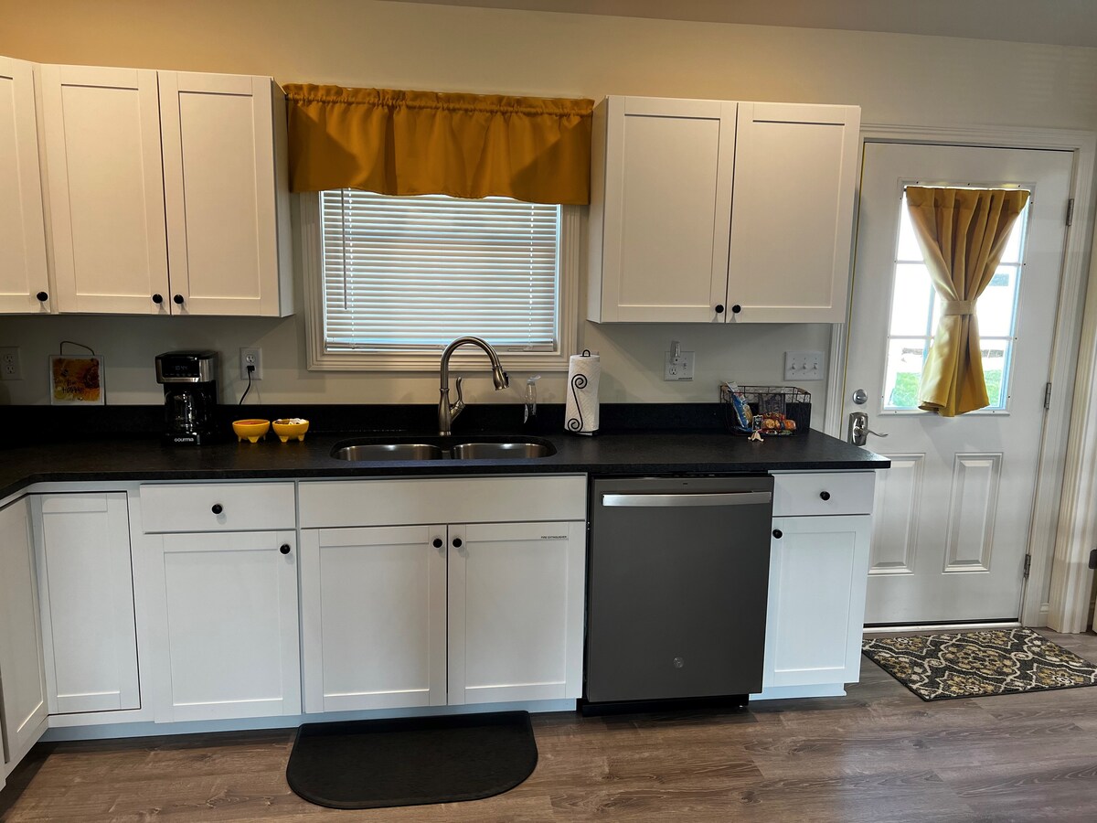 この牧場スタイルの家には、乳幼児/幼児/子供の同伴禁止ポリシーがあり、敷地内での喫煙/ベイピングは禁止されています。 ベッド&バスルーム2室、リビング&リーディングルーム、キッチン、ダイニングルーム、庭を見渡せるブランコ&デッキ付きの玄関ポーチがあります。 ガラスのドアからオープンフロアプランのデッキに出ることができます。 マスターベッドルームには、テンピュアペディック製のクイーンサイズベッド1台とバスタブ&シャワー付きの専用バスルームがあります。 ベッドルーム2にはインナースプリングのダブルベッド/フルベッドがあり、シャワー付きの2つ目のバスルームの隣にあります。