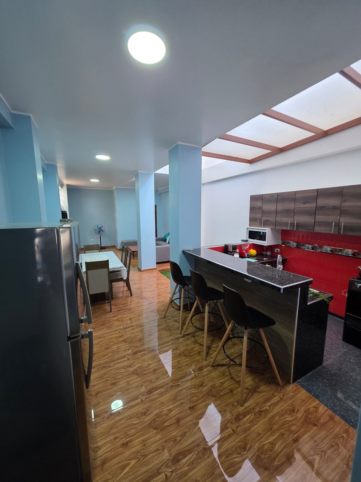 Modern and cozy apartment in La Merced, just 3 minutes from downtown. Fast Wi-Fi, a fully equipped kitchen, a Smart TV, and everything you need to feel at home. You'll enjoy the views! Highland Coffee is 3 blocks away, and the "Selva Central" Bus Terminal is 2 blocks away. We have a water tank, so the water service won't be interrupted. We have Netflix, YouTube, FireTV, pots, kettle, glasses, plates, orange juicer, bedside tables and closets, electric shower, towels, toilet paper, soap, etc.