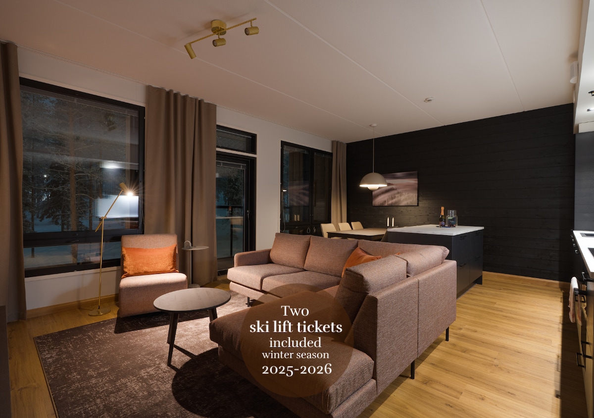 Leviで豪華なスキーイン/アウト。ジャグジー、スキーパス2枚。