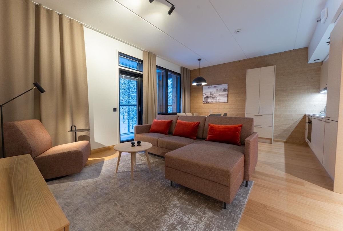 レヴィにあるサウナとジャグジー付きの豪華マンションへようこそ! フロントスロープの中心部にある、素晴らしい55㎡の2ベッドルームアパート。グレイシャー・エクスプレスからわずか50mです。1階。豪華な寝具、設備の整ったキッチン、おしゃれなリビングルーム、高品質なデザイン、高速Wi-Fi、スマートテレビ。サウナ、洗濯機、乾燥キャビネット。電気自動車の充電、無料ジム、駐車場、スキー用品の保管庫。 専用の屋外ジャグジーとスキーパス2枚が含まれます。 スタイリッシュにレヴィを体験しましょう!今すぐ予約!