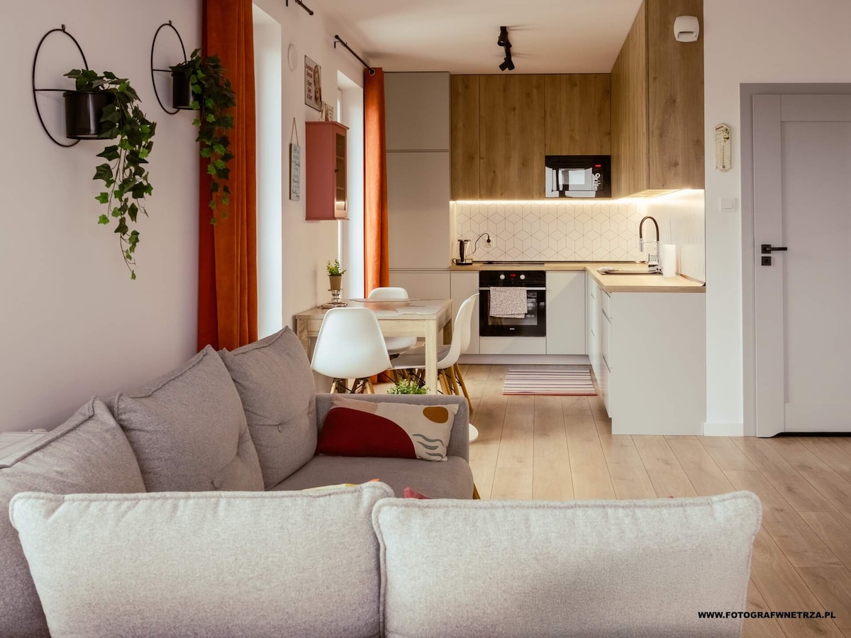 マヌファクトゥラの向かい側の2階にある、モダンで設備の整ったワンルームアパートメントです。 エアコン。 無料の屋外駐車場。 このアパートは週末の休暇にも出張にも最適です。 ロケーションがとても良いです。ウッチュのほとんどの主要な観光スポットまで徒歩または公共交通機関で行くことができます。