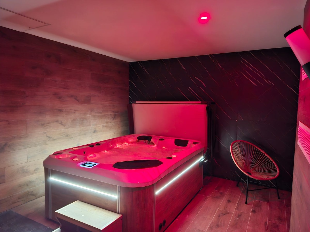 バルネオ、サウナ、タントラソファ、秘密のドアがプライベートスパとサウナとマッサージテーブルを明らかにする高級住宅。 バリ島にインスパイアされたこの美しい66平方メートルの宿泊施設で、2名様でリラックスしたひとときをお過ごしください。 快適さ: •キングサイズベッド(180 x 200)、高級寝具付きスイート •星空の下のダブルバスタブ • マッサージテーブルとサウナを備えた秘密の部屋 •スチームカミンとスマートテレビを備えたリビングルーム •ダブルシャワー付きのバスルーム • タントラチェア