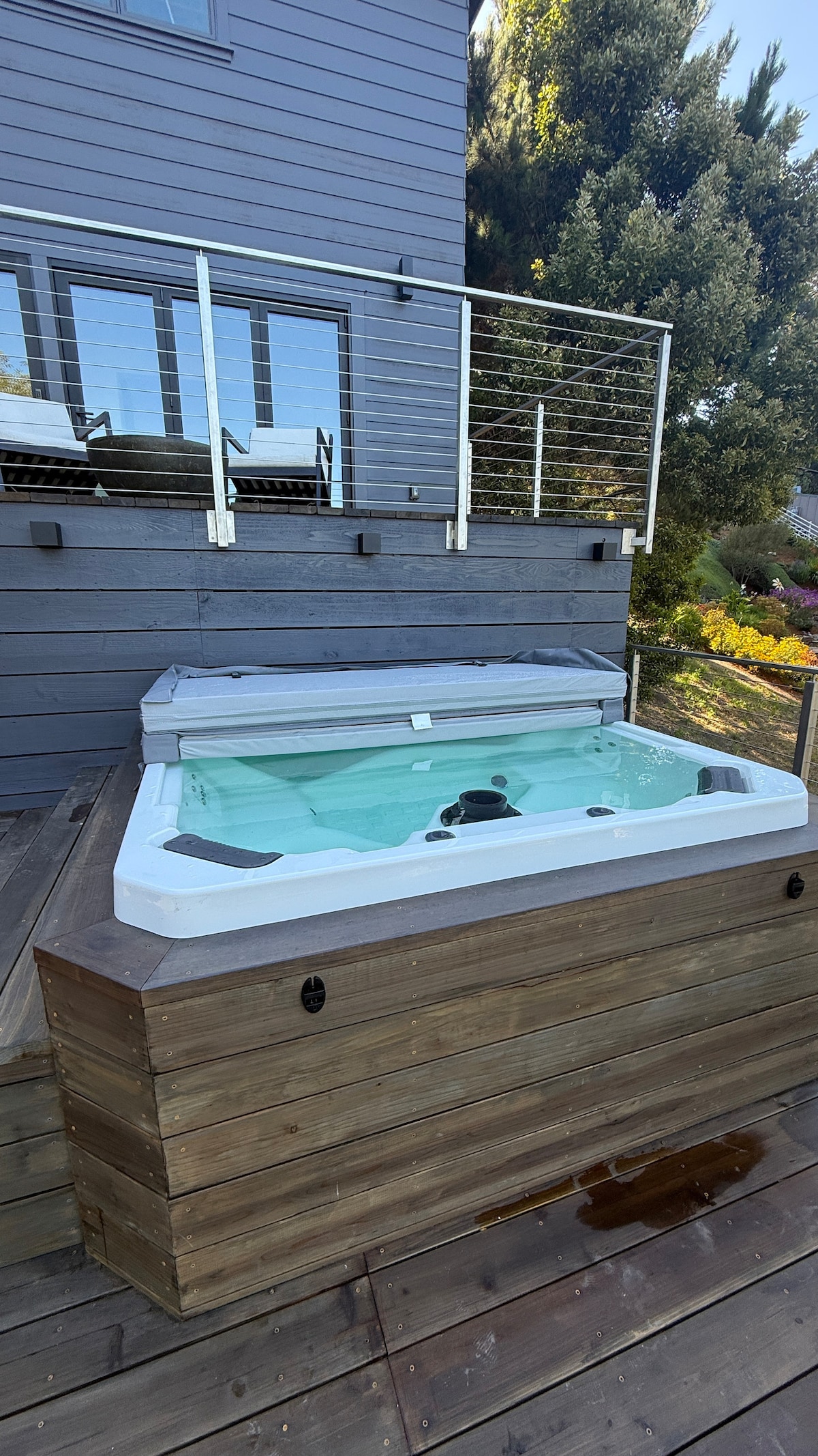 このオーシャンビューの家は、2つのハイエンドな改装が施されました。まず、メインハウスには新しい最高級のシェフのキッチン、新しいバスルーム、新しいリビングエリアがあります。 次に、離れのスタジオも新しいキッチン、寝室、バスルームを備えた高級リフォームを施しました。さらに、新しいマルチティアセコイアデッキとホットタブが設置されました。 ここは住宅街なので、屋外での騒音は常に最小限に抑える必要があります。パーティーや騒がしい集まりは禁止されています。