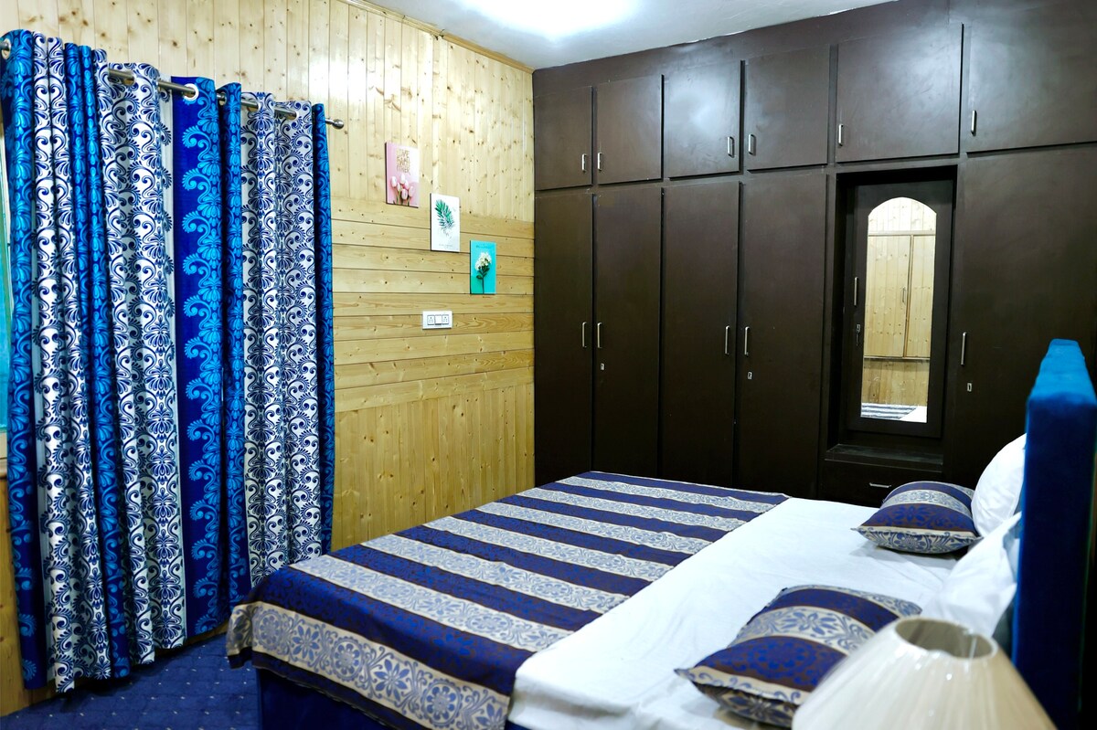 1. Accommodation Details: One booking consists of: -1 Bedroom(Private) -1 Change/Luggage Room(Private) -1 Living Room(Private) -Lobby(Private) -Personel Kitchen (Extra charges) 2. Location: -50m away from Dal Lake -50m away from Dalgate market 3. Nearby Amenities: -ATM, bank and Hospital -Food outlets, especially veg options: -Krishna Dhaba -Gulab -Local dhabas. 4. Transportation: -Local transport available at the doorstep for various destinations incl Mughal Gardens, Lal Chowk etc.