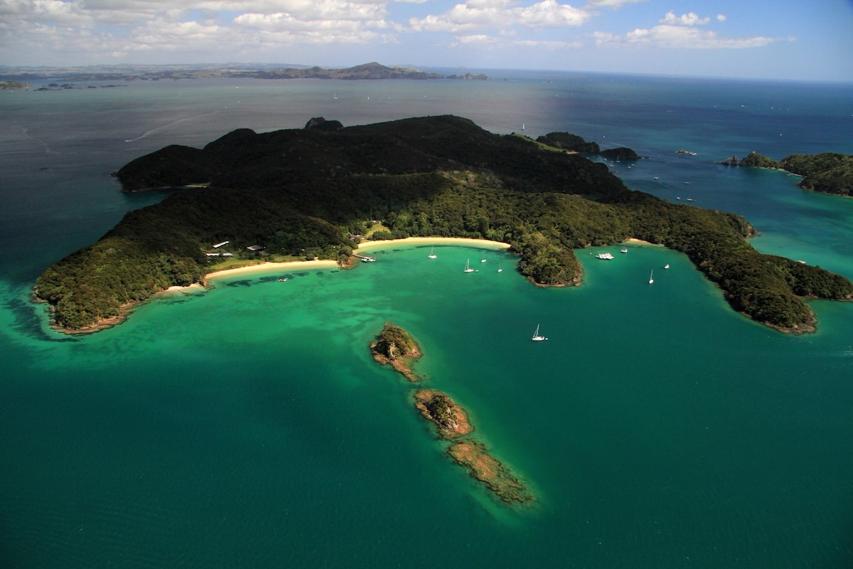 素晴らしい天然林に囲まれた、このプライベートな潮のビーチフロントは、ご家族連れ、グループ、またはリラックスしたい方に最適です。ベイ・オブ・アイランズで最も手つかずの自然が残る場所で、鳥のさえずりに包まれながら泳いだり、釣りをしたり、海の幸を集めたりできます。 Wharemoanaは8人を快適に収容できます。家には2つの寝室(それぞれクイーンベッド2台)があり、外側のキャビンにはスーパーキングシングル2台と独立したクイーンサイズベッド1台があります。キャビンと家にはそれぞれ専用のトイレとシャワーがあります。