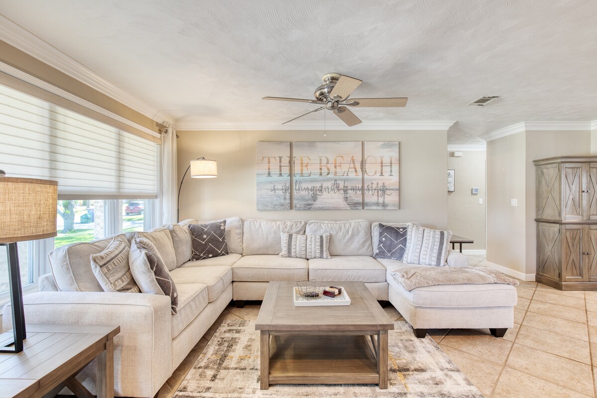 Welcome to Coastal Charm your perfect Florida coastal getaway. This beautifully appointed 3bed, 2bath home sleeps up to 7 guests with 2 king beds, 1 queen, and a pullout couch. TV in every room 10k channels. Enjoy coffee & hot cocoa bar sets the tone for relaxed mornings. Fully fenced yard, gas firepit & BBQ. Explore everything Northeast Florida has to offer. Pet friendly, garage access, and stocked with everything you need. Coastal Charm isn't just a place to stay — it's a place to exhale.