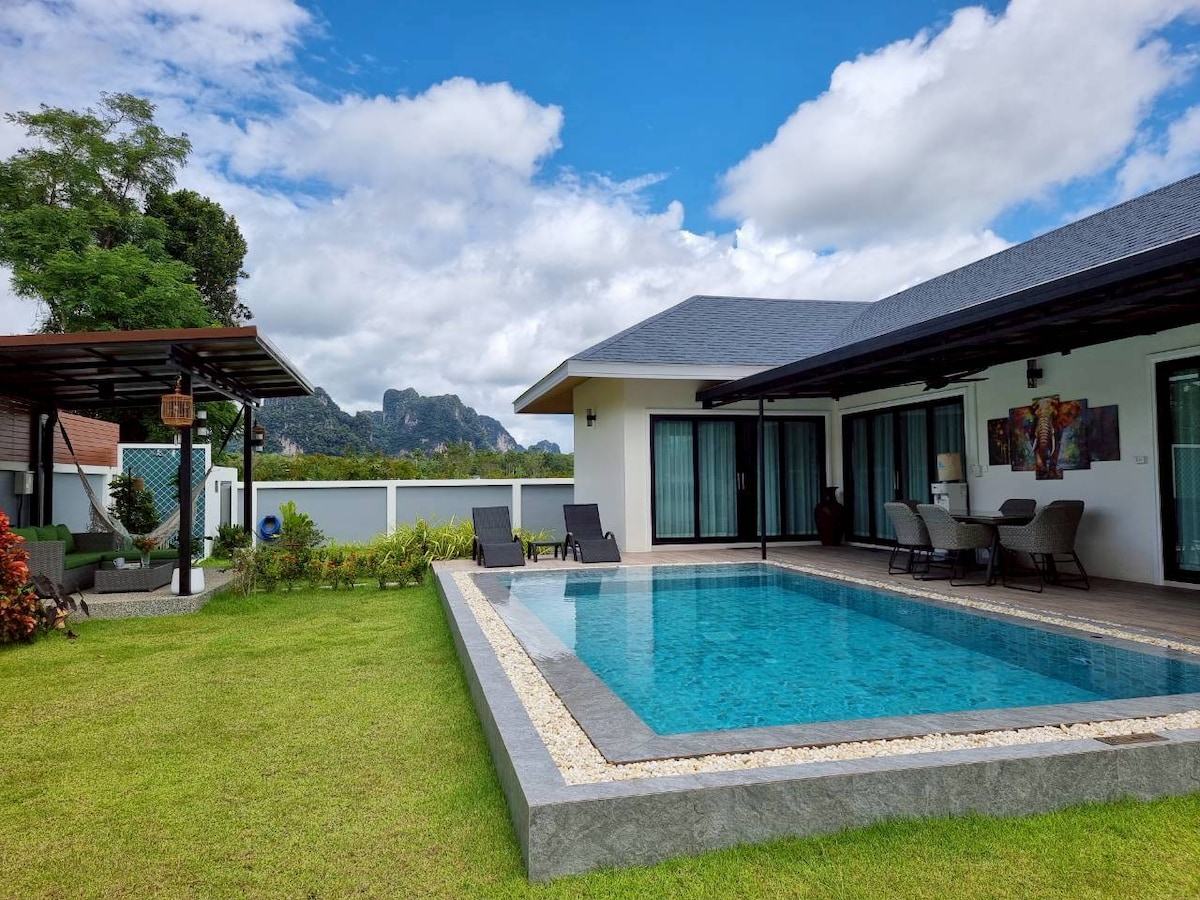 2024年11月に新築されたヴィラ。 クラビの美しい山々のすぐそばにある、居心地の良いヴィラで平和と静けさを見つけてください。 専用プールを完備しており、落ち着いた環境と素晴らしい山の景色をお楽しみいただけます。 ヴィラは自然と完璧に調和しており、忙しい生活からのリラックスした逃避行になります。 快適に過ごせるように設計されており、リラックスして安心できます。 静かでプライベートな空間で、休息、充電、山の美しさを堪能したいカップルやおひとり様の旅行者に最適です。
