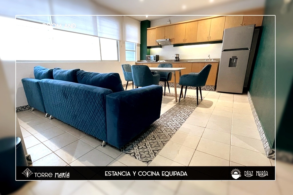 美しいメキシコ・アンダルシア庭園の素晴らしい眺めを持つ3階建ての新しいアパートメント。広いベッド2台、バスルーム2室、キッチン、ダイニングルーム、快適なリビングルーム。庭の4本の木々に囲まれているので、とても静かです。サンタ・マリア地区は若者の好みに合わせて位置づけられており、様々な種類の食事が楽しめます。また、歴史地区の中心部に隣接しており、サン・コスメ地下鉄駅から徒歩10分、4駅でソカロに到着します。