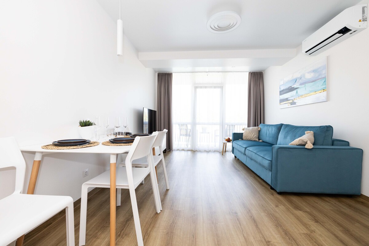 居心地の良いバルコニーがある静かでおしゃれなお部屋でリラックスしてください。 美しい遊歩道を歩けばわずか10分で海に行けます。 新しく設備されたアパートには、快適な休暇に必要なものがすべて揃っています。 ビーチに飽きたら、無料のプール、バレーボールコート、バスケットボールコート、フェンス付きエリアのグリルエリアをご利用いただけます。 建物の共用スペースには、ジム、ワークエリア、休憩エリアがあります。 入り口のすぐ隣には、お車の専用駐車場があります。
