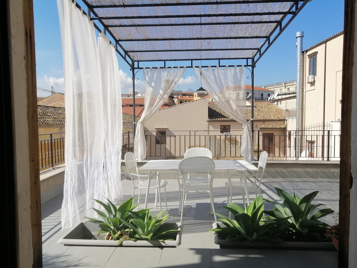 パレルモ中心部のロフト、テラス付き。無料駐車場