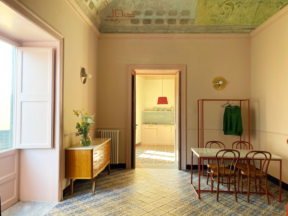 歴史地区の中心部に位置するマジョーネ広場の広い眺望とテラスを備えた2階建ての明るい小さなアパートメント。サンブカ宮殿は、広々とした内部空間と二重庭園を持つ、市内で最も重要な貴族の邸宅の一つです。正面は、カルサ地区の主軸であるアッローロ通りに面しています。周辺の主要なモニュメントや美しい建物が、昼夜を問わず、この町の本当の魂を体験するのに理想的な住まいとなっています。