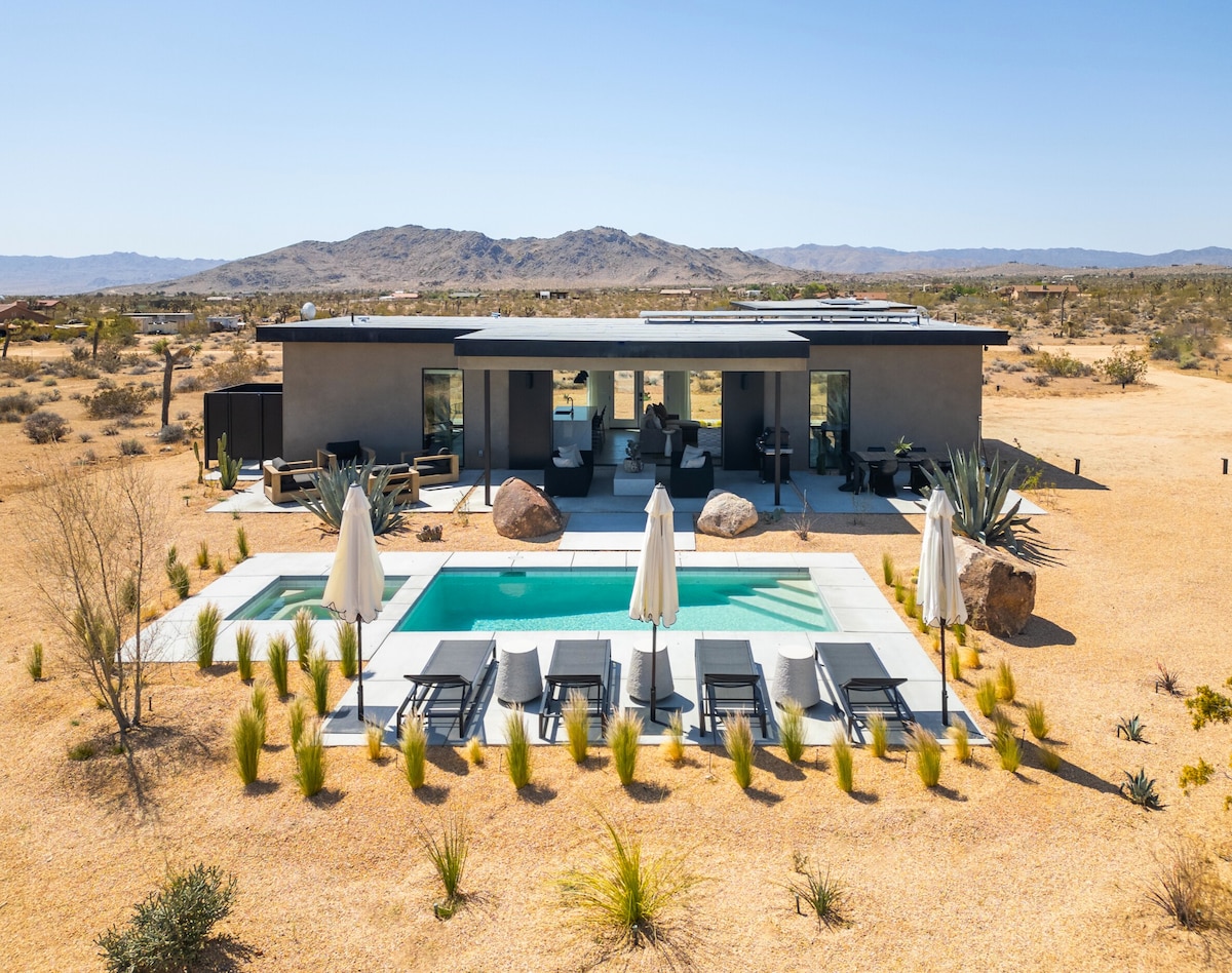 Welcome to Mason House. A brand-new, 5-star desert oasis retreat. Step into your own private resort situated on 2.5 acres of serene desert landscape and enjoy the 360° mountain views along with: •Luxury Pool •Hot Tub/Spa •Fire Pit •Hammocks •Outdoor Shower •Propane Grill BBQ •Outdoor Dining •Outdoor Lounge •Comfy King Beds •Massive Board Game Collection •Spectacular Views