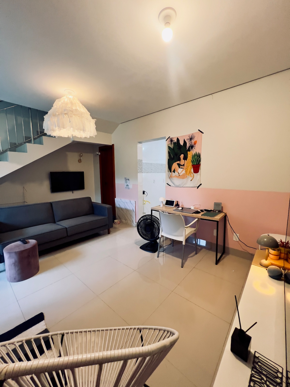 Acomodação aconchegante e funcional, ideal para solteiros ou casais. Sala arejada com sofá de quatro lugares, cozinha equipada com utensílios, frigobar e micro-ondas, ferro de passar roupas e cafeteira. Quarto confortável, banheiro com bom chuveiro. Ambiente limpo, iluminado e bem ventilado. Excelente localização, a uma quadra do Capim Dourado Shopping. Conforto e praticidade para sua estadia. Reserve já!