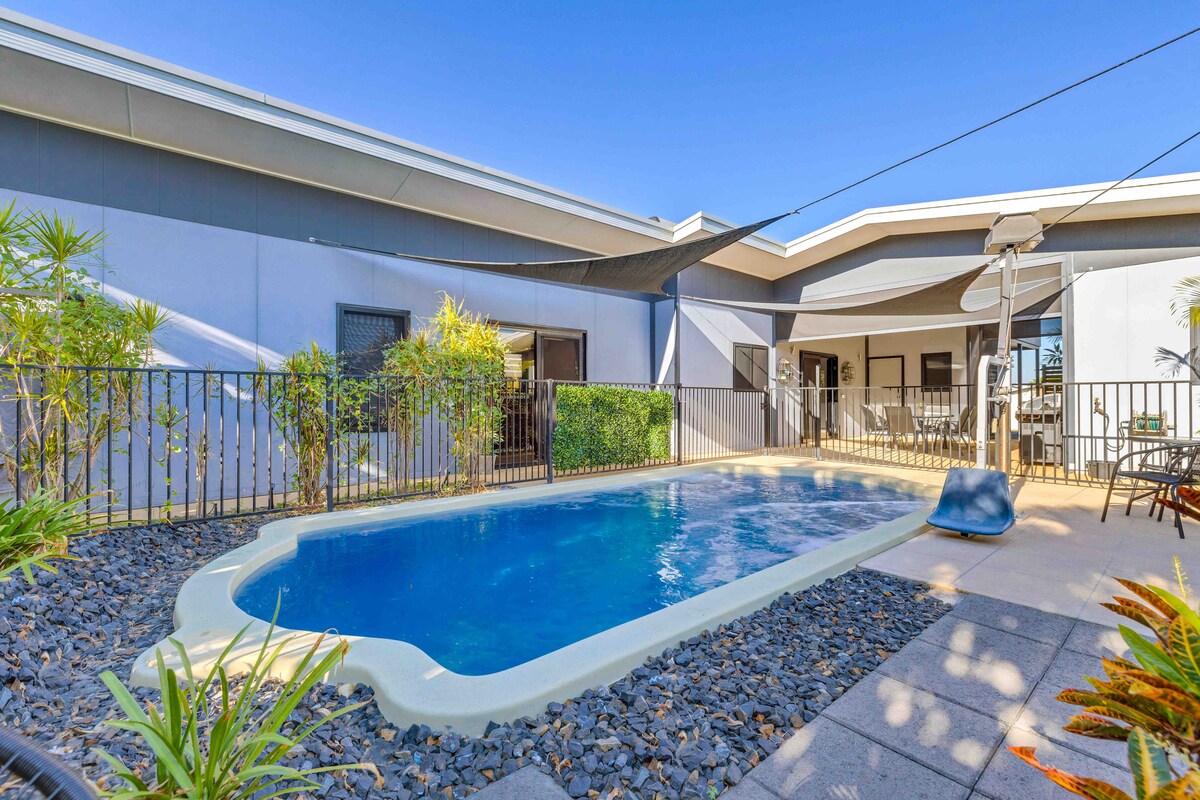 ズッコリにある新築の3ベッドルームのリゾートで、スタイリッシュに✨リラックス✨ 家族やグループ向けに設計されており、バーベキューを楽しみながら屋外で食事をしたり、ドリンクを片手にきらめくプールのそばでくつろいだり、プライベートメディアルームで最新の映画を観たりできます。子どもたちが楽しんでいる間、保護者は広々としたリビングとダイニングエリアでリラックスできます。ダーウィンのCBDや空港からわずか25分の静かな郊外に位置するこの宿泊先は、快適さ、便利さ、贅沢さを兼ね備えています。
