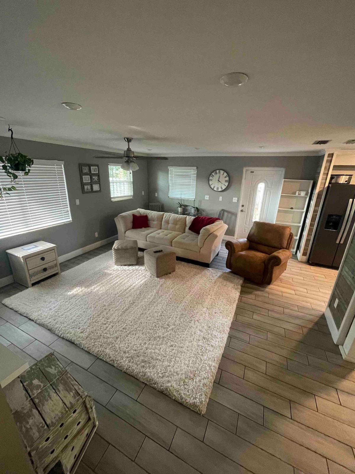 Beautiful beach home located in the only neighborhood in Ellenton with a public boat ramp. Walking distance to boat dock, minutes from Premium Outlets and the Sarasota Mall, beaches and so much more. Fenced in backyard beautifully manicured. Screened in back patio with dinner table, couches and TV. 3 bedrooms and 2 full bathrooms with large open family room space. 2 couches, 1 blow up mattresses and Pack and Play available. Enjoy a private Florida paradise.