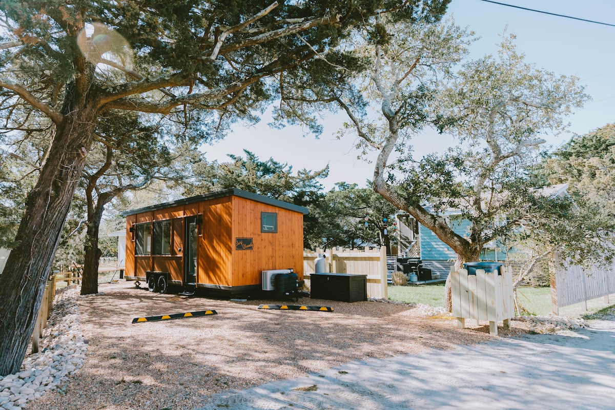Petite Noire - ビーチ、湾、自然の散策道までわずか数分のノースカロライナ州キティホークにある新築の豪華なタイニーハウス。 多くのスパアメニティを提供する、完璧なロマンチックな休暇です。 ºキングサイズのジェル注入マットレス ºレインシャワーヘッド2つ付きの大型ウォークインシャワー ºキティホークの森を見下ろす屋外の銅製の浴槽2つ ºジャグジー ºレインシャワーヘッド2つ付き屋外シャワー º伝統的なバレルサウナ ºフルキッチン º高級感のある仕上げ