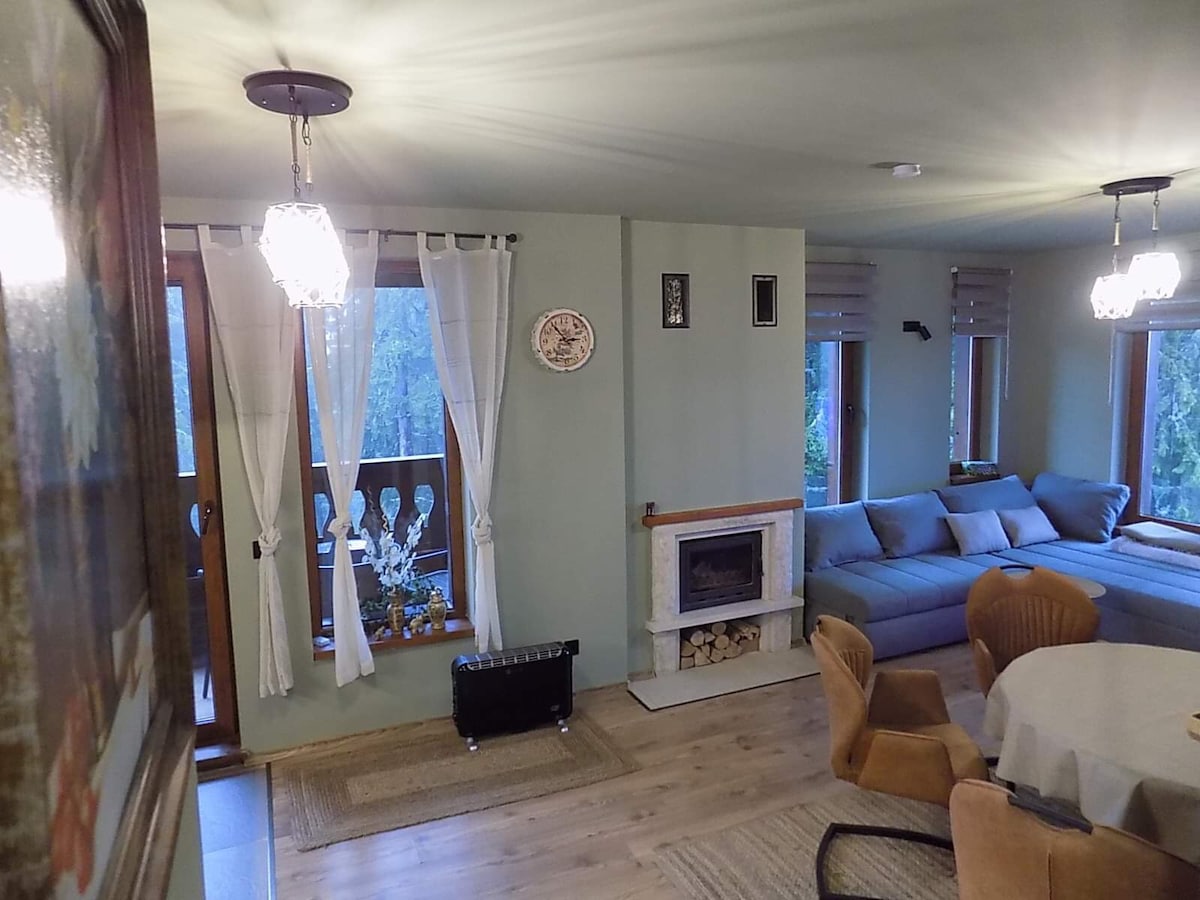 広々とした1ベッドルームアパートメントとキッチン付きのリビングルーム。家族連れやグループに最適です。 シャワー付きの広いバスルームと独立したトイレがあります。洗濯機、コンロ、電子レンジ、冷蔵庫が備わっています。 暖房は各部屋にコンベクターラジエーターと暖炉があります。 隣にはフィットネスセンターがあります。ホテルの共用エリアには、ビリヤードとゲームがあります。 パンポロヴォのスチュデネツスキースロープから徒歩4 ~ 5分。確保された駐車スペースはありませんが、通常は駐車スペースがあります。近くに有料駐車場があります。