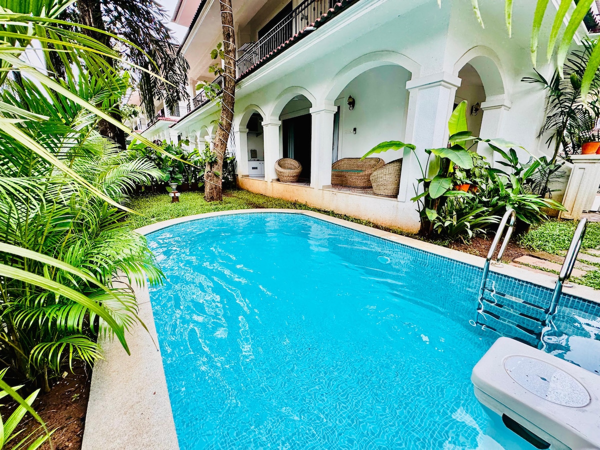 ゴアの3BHKヴィラ、ジャグジー、専用プール、管理人