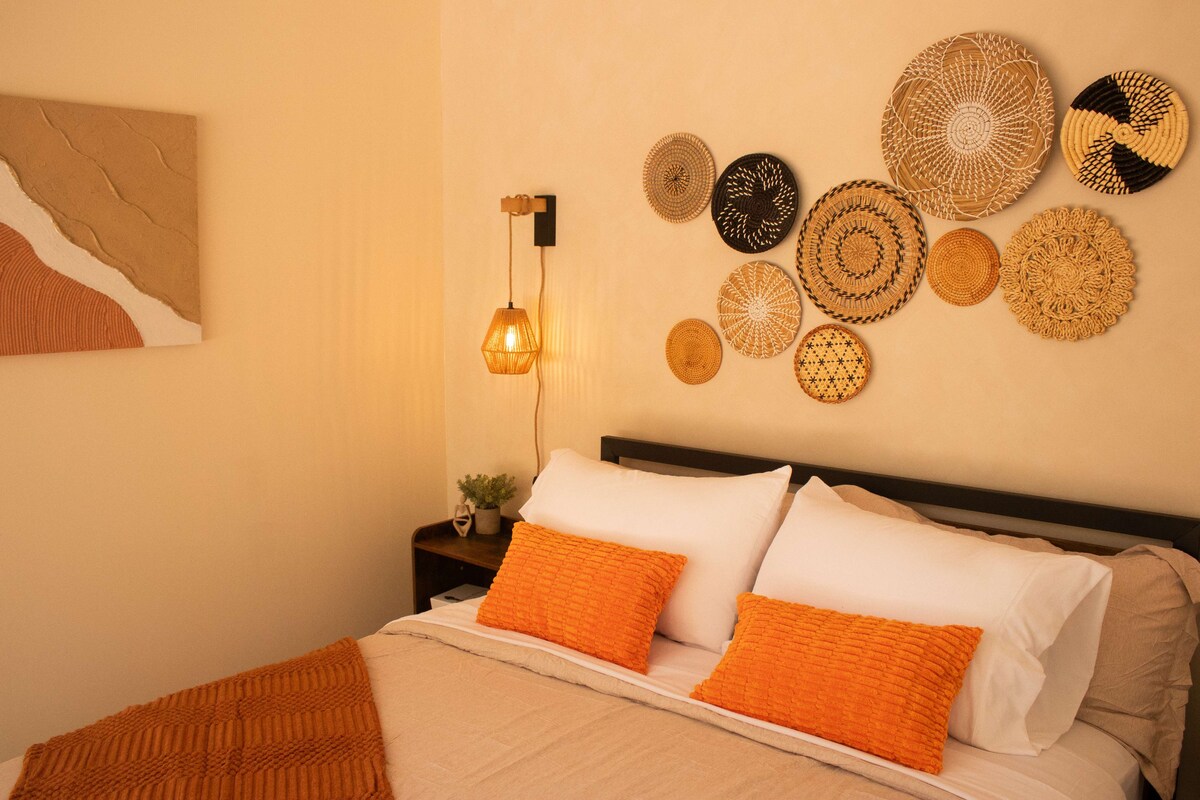 クイーンベッドを備えた魅力的なワンルーム