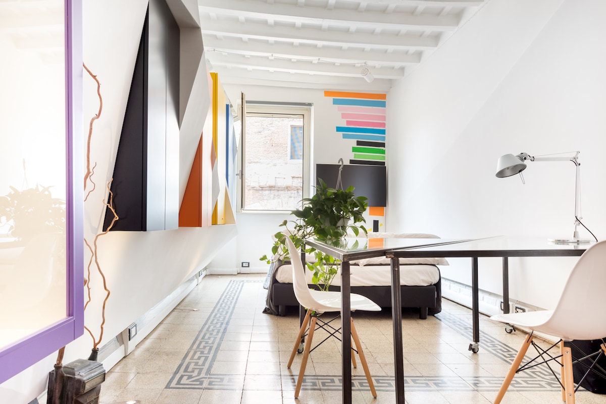 サンピエトロを見下ろす、モダンで調和のとれたカラフルなアパートメント