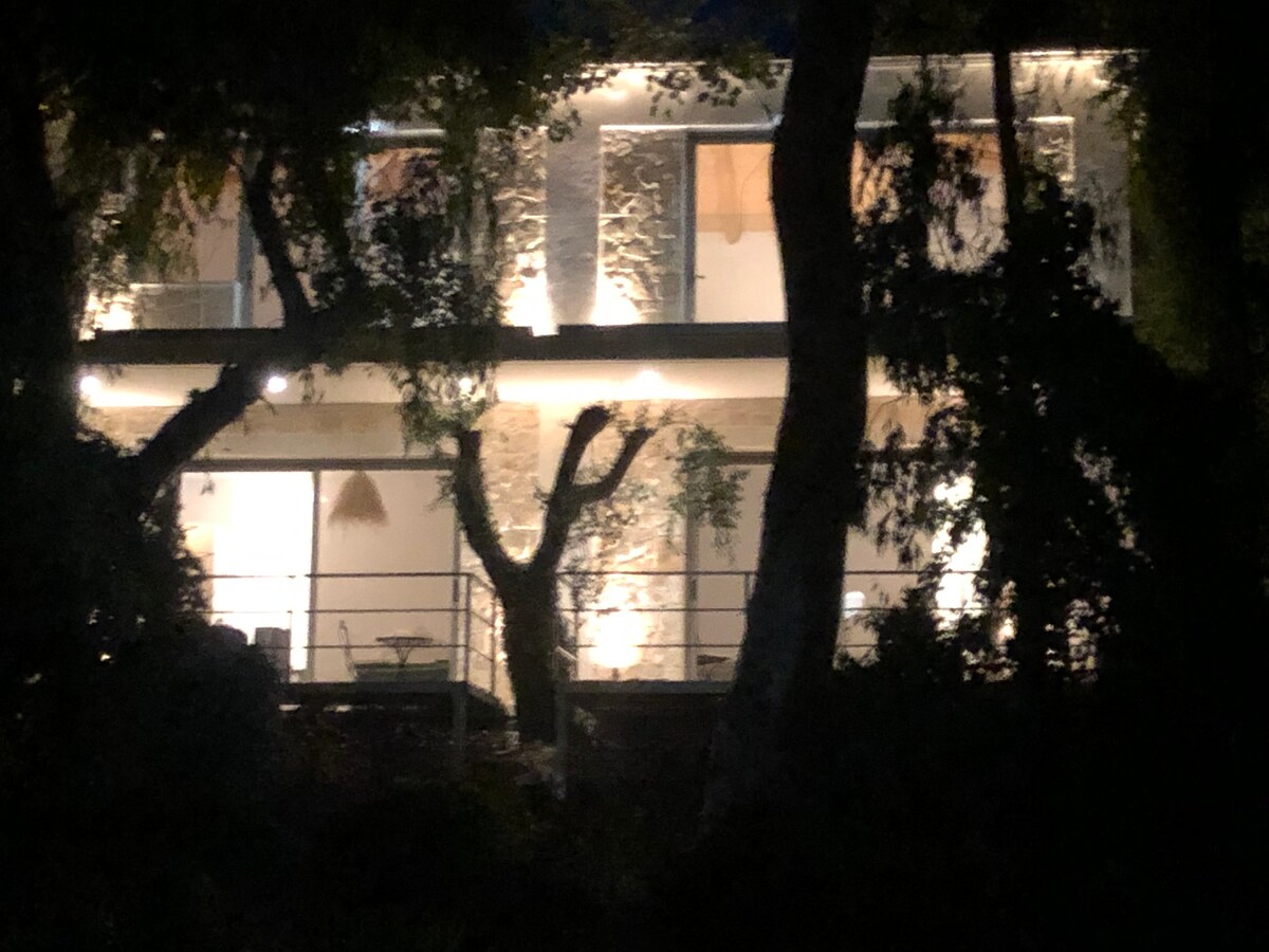 Villa Xenonerantzia, is located 10 km from Corfu town and the airport, 3 km away from Gouvia village, in central Corfu. It is on a hill, with a marvelous view of the sea and the old town. The area is quiet and its location in the center of the island is ideal for a quick access to both east and west beaches. In 5 minutes distance there are super-markets, various shops, restaurants and the marina of Gouvia. The house is 260sqm, with spacious rooms, fully equipped. It has a magical vibe!