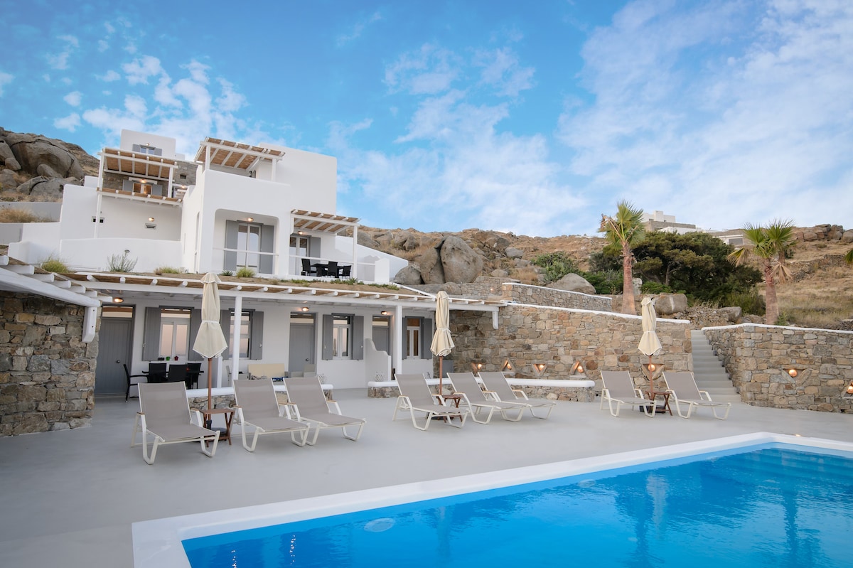 ミコノス4島ヴィラ「ヘラ」共用プール付き