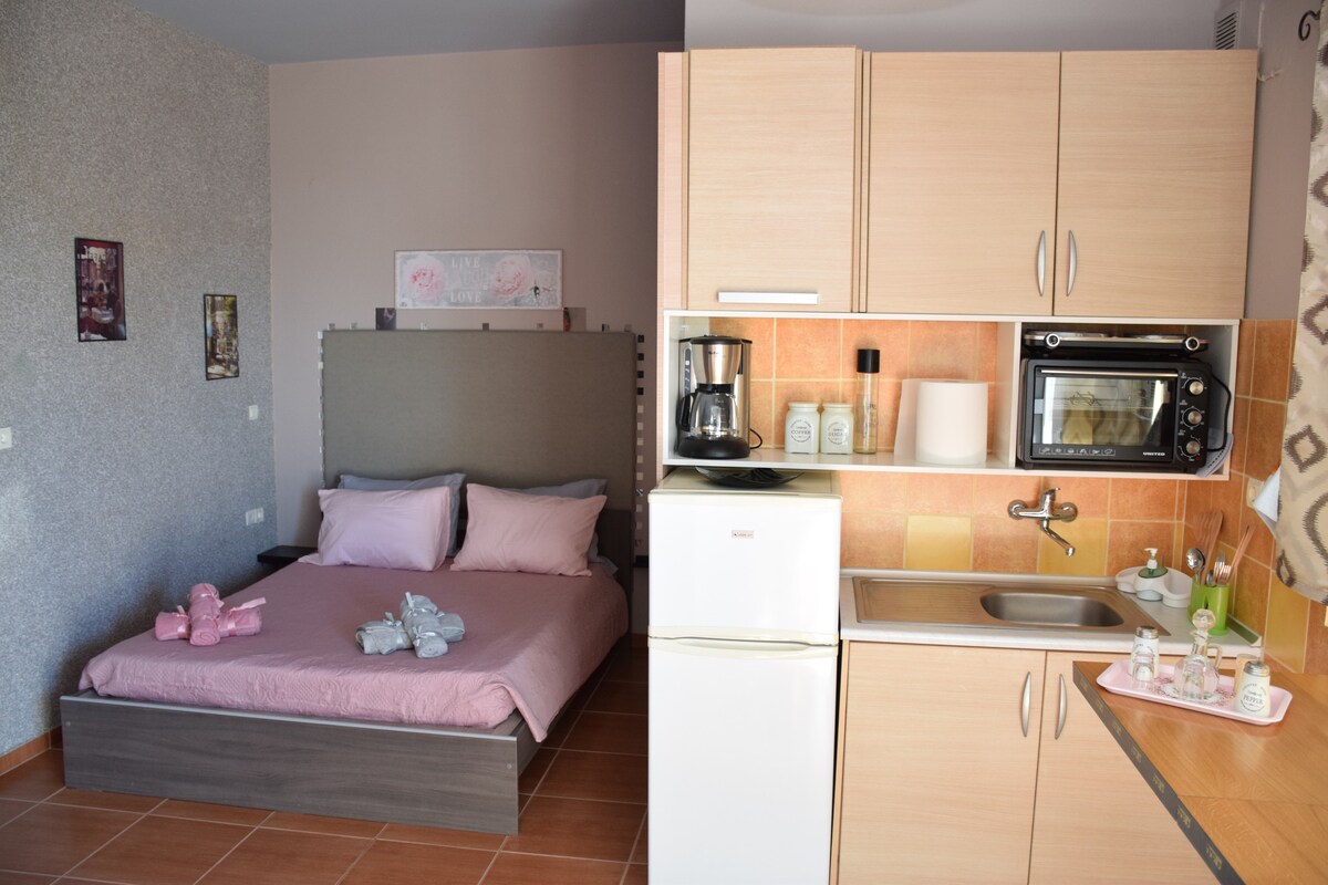 Α sunny apartment at the 3rd floor, ( no elevator) with a beautiful sea view, bathroom, double bed and a kichenette just 2.5 kilometers away from the centre of Chania.A cozy place resulting from hospitality and in combination with the spirit of Chania will leave you unforgetable experiences.