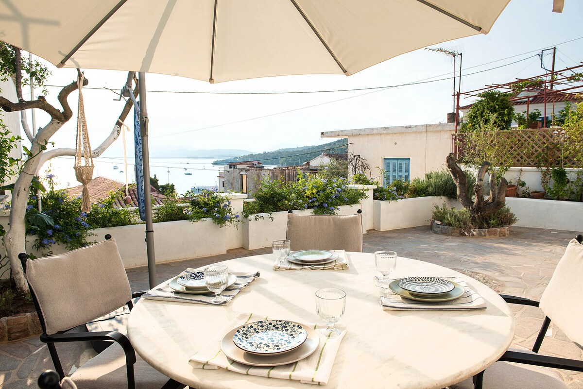 この広々とした明るい家をお楽しみください。広いテラスからは、ポロス島の旧市街とエーゲ海の素晴らしい景色が一望できます。 ハンモックや屋外のお風呂の木々のそばでリラックスしながら、ワインを飲んだり、朝のコーヒーを飲んだり、ボートが通り過ぎるのを眺めたりしましょう。 当宿泊施設はご家族やお友達との旅行に最適です。ポロス島とペロポネーゼを探索するのに最適なスポットです。 ビーチ、最寄りの徒歩5分、レストラン、コーヒーショップ、アクティビティ、または訪問できる場所に関する最高のヒントをお伝えします。