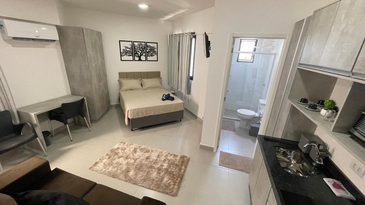 新しいアパートで、家具からリビングルームを飾る絵まで、私が心を込めてデザインし、装飾しました。 カップル、ご家族、または一人旅の方に最適な居心地の良い休憩の場所です。 市場や薬局の隣、フォスの中心部に位置し、カフェ、レストラン、ジム、バーが1ブロック先にあります。 私のアパートには、フォス・ド・イグアスでの滞在を思い出深いものにするために必要なすべての設備が揃っています!