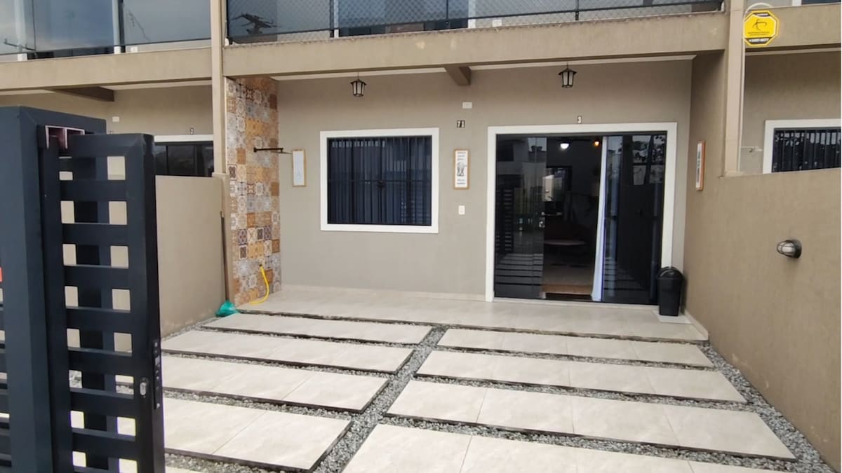 Casa a 900 mts da praia. Com 48 comodidades, sua estadia perfeita está aqui. Local ideal para Home Office, amplo espaço e internet super rápida. A 20 minutos de Paranaguá. Casa confortável, funcional e bem arejada. Local tranquilo e seguro. Acessível a mercados, farmácias, lojas e locais para alimentação (lanchonete, restaurantes, pizzaria). Cinco minutos de carro do centro comercial e gastronômico de Praia de Leste. Próximo ao Supermercado Bavaresco. Desfrute de dias incríveis.