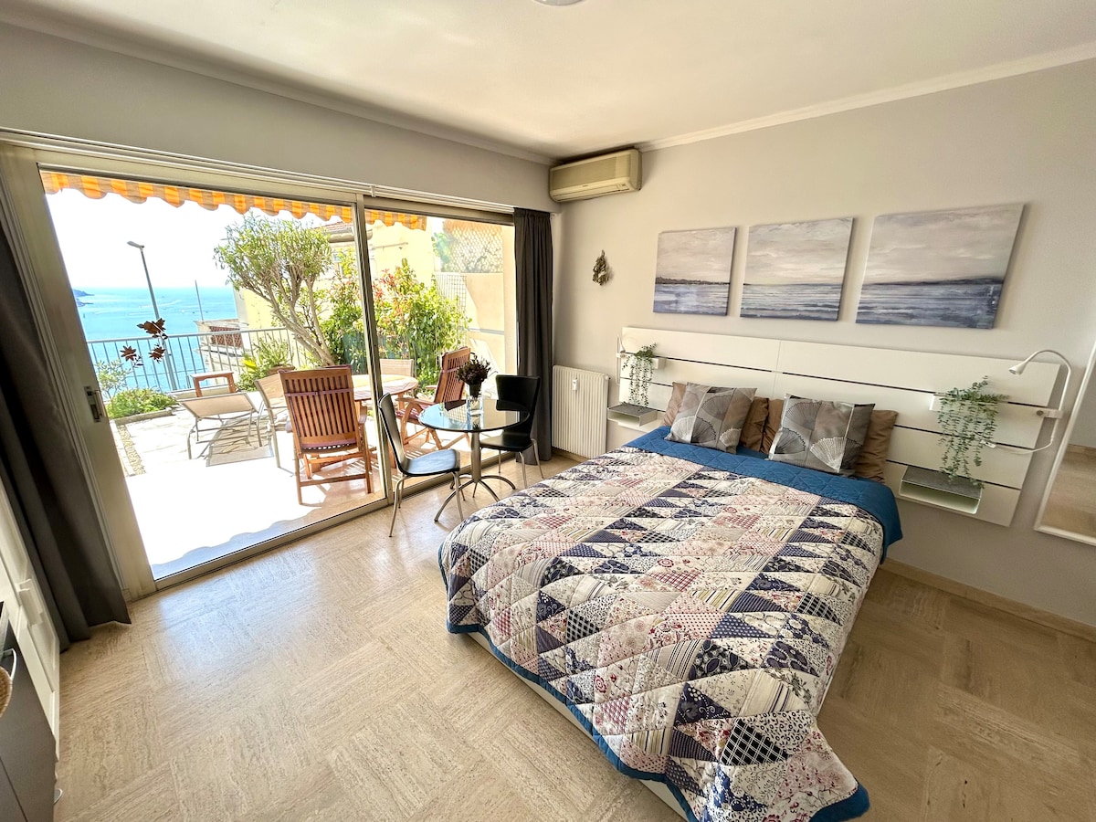 40平方メートルの素敵なフラットで、30平方メートルのテラスがあり、最近改装され、オリジナルのアートワークがあります。 設備・器具のそろったキッチン。 ダブルベッドルームには、テラスに面したとても快適な新しいベッドが1台、リビングルームにはシングルベッドが1台あります。 ヴィルフランシュ湾の素晴らしい景色が見え、広々としたテラスでのんびりするのに最適です。 オーナーのHeleneさんとChadwickさんは隣に住んでおり、チェックイン/チェックアウトや現地の情報をいつでも提供してくれます。エアコン付き。