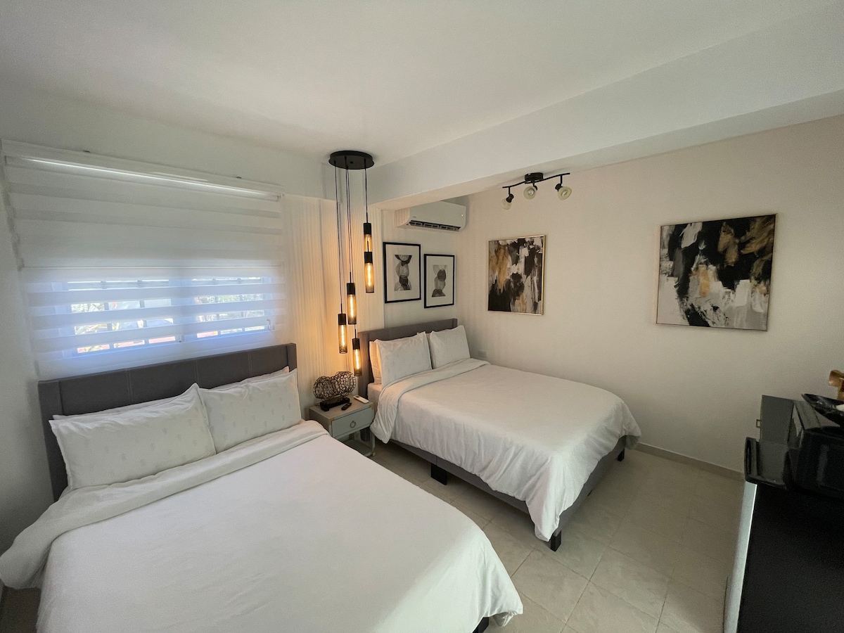 Located in an exclusive sector, first floor apartment with excellent ocean views from living room, master room and kitchen, balcony-terrace. It has wifi, cable, Roku, air conditioning in the rooms. Spacious rooms. The common area has a swimming pool. Equipped kitchen. It is located near excellent beaches, water activities places, bioluminescent bay, famous keys, restaurants and night activities.