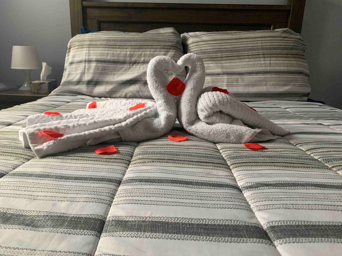 こちらの禅的で新しくおしゃれなお部屋で、のんびりとおくつろぎください! 照明がついたフィーチャーウォールをお楽しみください。禅のような体験を提供します。 世界的に有名なウェストエドモントンモールから6分、ダウンタウンとアルバータ大学から15分です! ルイス・エステーツ・ゴルフ・コース、リバークリー・カジノまでわずか数分です! こちらにご滞在いただきたいです。 こちらでの滞在を今日ご予約ください!