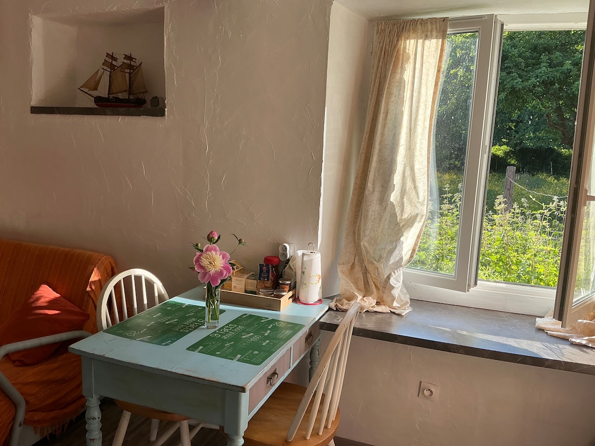 Appartement situé au 1er étage, dans le prolongement de notre résidence principale avec entrée indépendante. Pièce principale avec canapé, table à manger, cuisine équipée avec lave-vaisselle, four, micro-ondes. Salle de bain avec douche et lavabo. WC . Proche halage circuit vélo francette (800m), commerces, bois de l'huisserie et lycée agricole de Laval A 15 min du centre-ville de Laval en vélo. Cour permettant de garer votre voiture. Possibilité de stocker les vélos en bas de l'appartement.