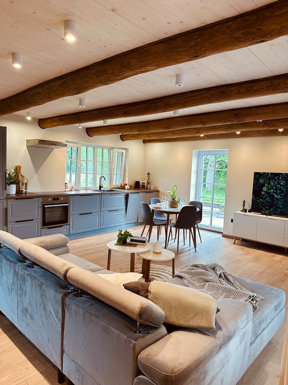 ❄️冬のお得な情報❄️ パルヌの中心部から車で10分の魅力的なログハウス。穏やかな雰囲気と広々としたフェンス付きの庭園。パルヌ、アウドル、そして最高のビーチの1つであるヴァルゲランナへの自転車/歩行用のライト付き小道があり、近くにはディスクゴルフ、ゴルフ、素敵なレストランがあります。近くには、南から北へ、そして北から南へと移動する鳥の最大の寄留地としてNatura 2000の保護下にある、かつての湿地帯であるAudru Polderもあります。とても静かでとても魔法のような場所です。