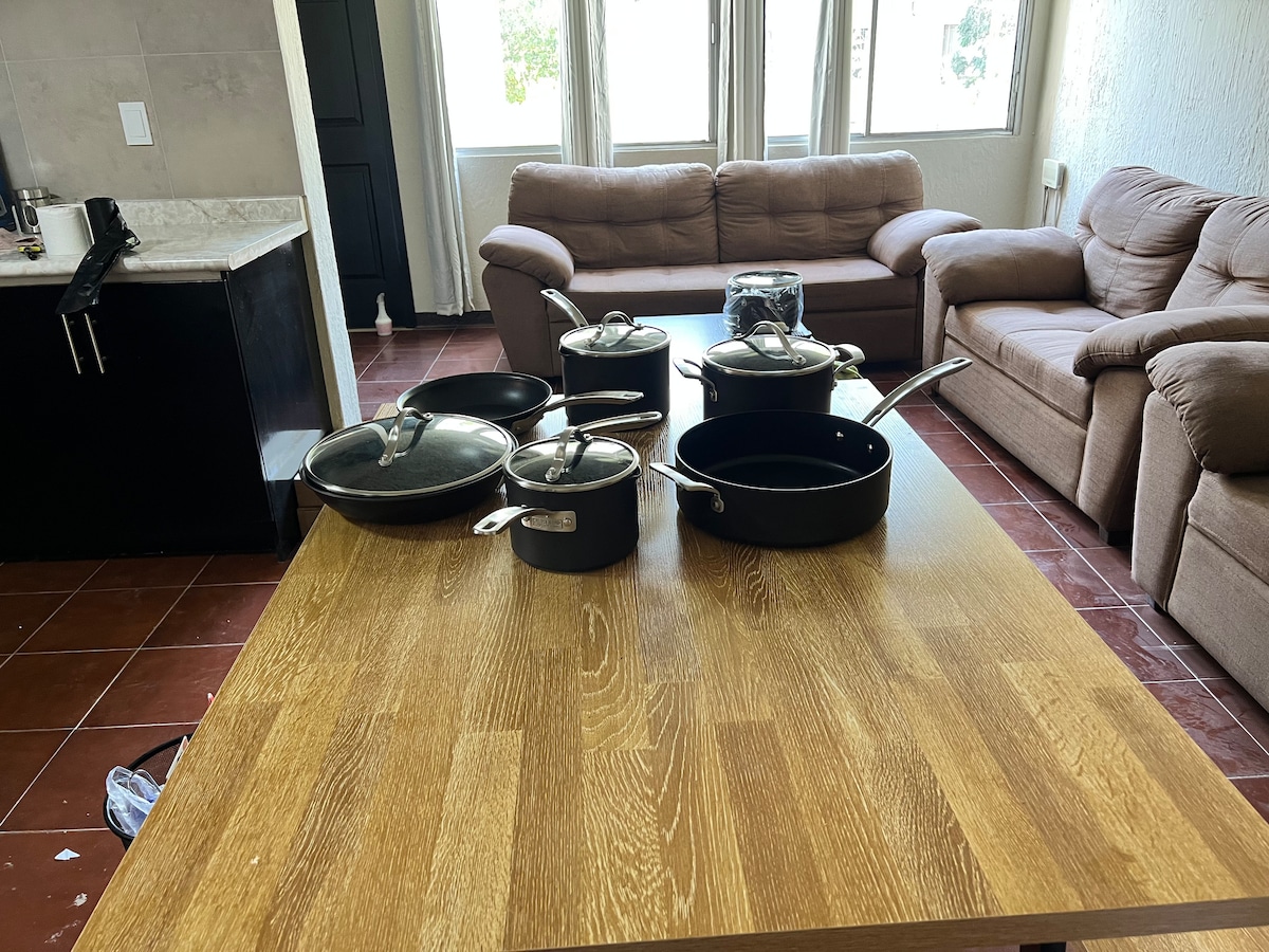 サポパンの中心部にある新しいアパートメントで、とても安全で静かなエリアにあります。 テルメックス・アウディトリウムは徒歩10分、チャロス・スタジアムも徒歩10分です。CUCEA、Guanamor、Calle 2、Conjunto Santanderは15分以内です。 ライトレールは2ブロック先にあり、サポパン大聖堂、パトリア広場などの市内の戦略的ポイントに移動できます。 あなたが自宅のように感じるために必要なすべてのサービスと付属品を備えています。