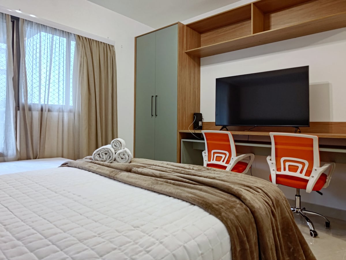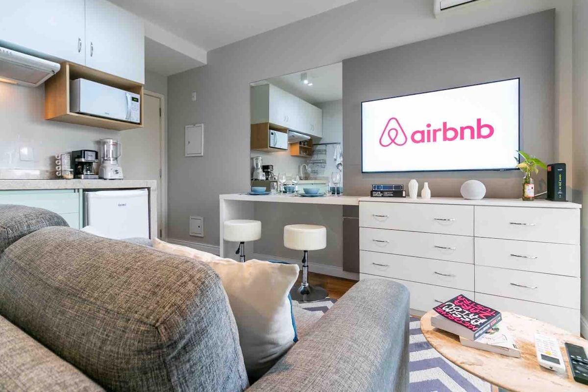 Com cara de casa e conforto de hotel o Studio Kairós está pronto para se adaptar às suas necessidades, indo de um espaço para uma noite romântica até um quarto para uma pequena família. Aqui você encontra AC quente e frio, Wi-Fi, TV 55'', colchão massageador, sofá-cama super confortável, bercinho para seu bebê... sem falar nas áreas de lazer do prédio, que são acessíveis aos hóspedes. É o espaço que você procura no Paraíso! O early check-in é gratuíto se a unidade estiver disponível.