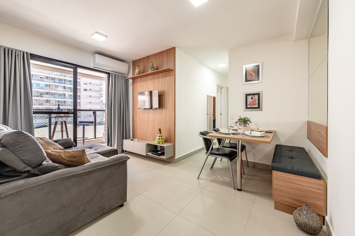 ベラ・ヴィスタにあるスタイリッシュな50㎡のアパート。24時間ドアマンがいます。寝室2室(エアコンとクイーンベッドは1室のみ、2室目はかなり小さく、ダブルサイズのソファベッドが入るのでオフィスとして使用できます)とバスルーム1室。すべての窓から素晴らしい景色が見えるので、仕事やリラックスに最適な場所です。バルコニーのプライベートジェットチューブは、街の景色を楽しむのに最適な場所です。快適さ、利便性、そして街で最高の景色の1つを求めているカップル、プロフェッショナル、または小さなファミリーに最適です。