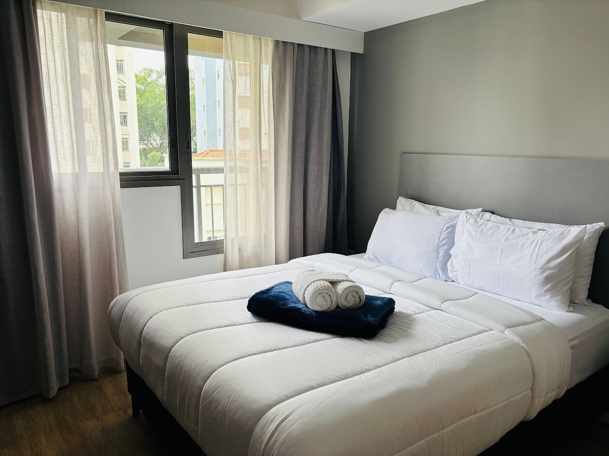 パウリスタのワンルームマンション モダンで家具付き、地下鉄に近い