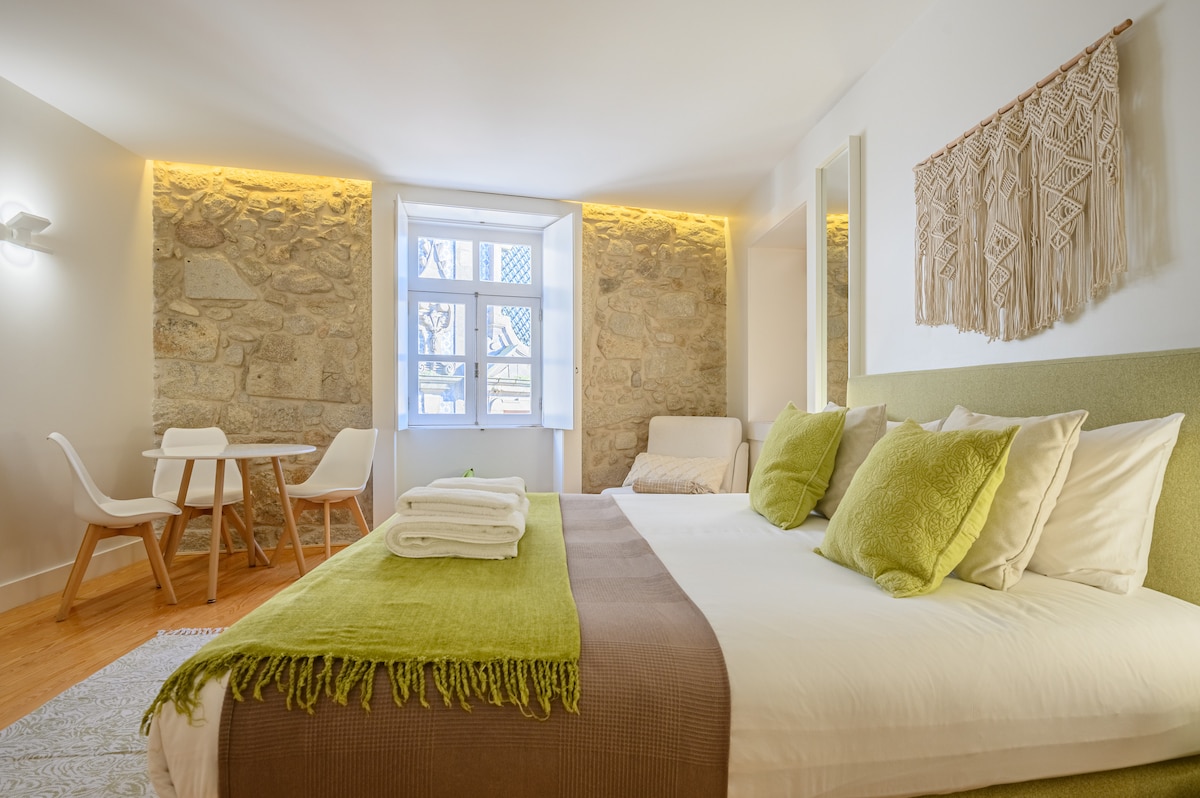 クレリゴスの塔やコルドアリア、ヴィルトゥデス庭園からわずか数歩の歴史的なポルトの建物にある、スタイリッシュな1ベッドルームのアパートに滞在しましょう。ドウロ川の壮大な景色を望むバルコニーをお楽しみください。1日探索した後にリラックスするのに最適です。多くの歴史的建造物と同様に、エレベーターはなく、ユニークな0.5バスルームデザイン(専用トイレ+オープンシンク&シャワー)が魅力を高めています。カフェ、ショップ、ランドマークに囲まれたこの場所は、友人やカップルがポルトに恋に落ちるのに最適な環境です。