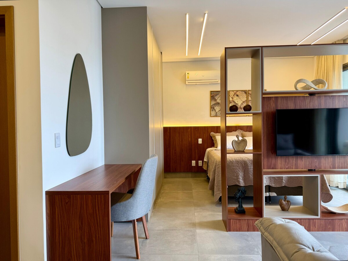リベイロン・プレトの高級住宅地に位置する新しくモダンなワンルームアパートメントです。Wi-Fi、エアコン、フルキッチン、40インチスマートテレビ、ビル内のブルーフィットジム、エアフライヤー、駐車スペース、完全なレジャーエリア、プール、サウナ、ゲームルーム、グルメスペース、コワーキングスペース、24時間営業のホームマーケット、市内で最高のロケーション、リベイロンショッピングから3分、リベイロンの最高の公園、バー、レストランの近くのプレジデンテ・ヴァルガス通りにあります。