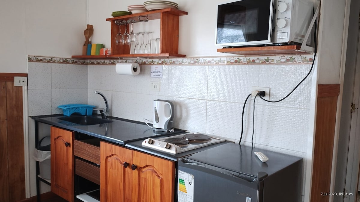 バルディビアの中心部から数分のところにある、アベニュー・ピカルテとコスタネラへのアクセスがあるこの完全装備のアパートで快適さとスタイルをお楽しみください。 - リビングダイニング。 - 設備の整ったキッチン:電気オーブン、換気扇、電子レンジ、食器洗い機、冷蔵庫、電気ケトル、トースター、コーヒーメーカー、攪拌機。 - 電気温水器、アイロン、ヘアドライヤー、タオル付きバスルーム。 -ダブルベッド付きの寝室。 - テラス。 - 800 MbpsのWi-Fi -建物内の屋根付き駐車場。