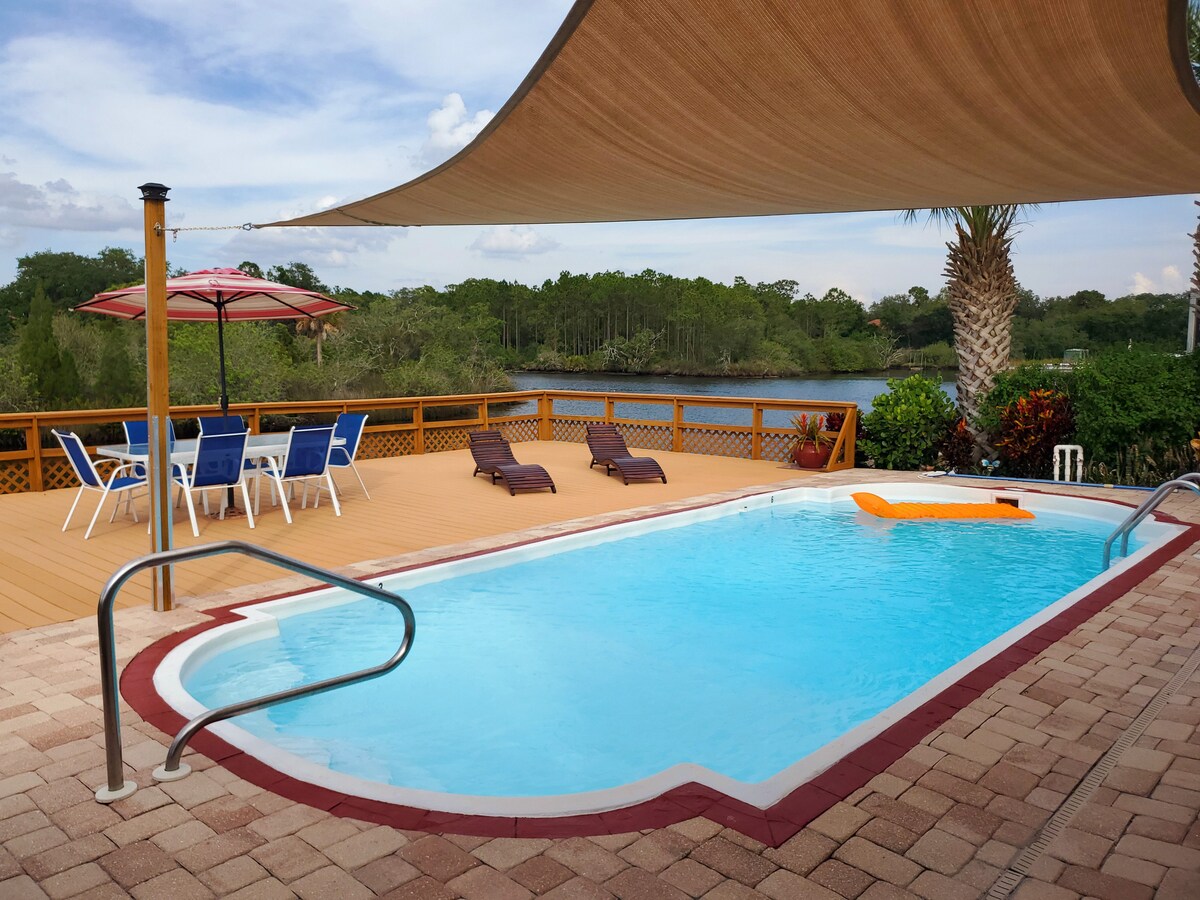 ウォーターフロントの宝石です!アンクロート川に位置する、2エーカーの保護島の向かいにある素晴らしいウォーターフロントの物件です。写真がすべてを物語っています!とても平和で、広いデッキでくつろぎ、専用の太陽熱温水プールを楽しむことができます。静かでプライバシーが確保されています。宿泊施設はタンパベイエリアの中心部にあり、多くのアトラクションに近いです。熱心なゴルファーである場合や、フロリダのビーチでくつろぎたい場合には理想的なレンタルです。