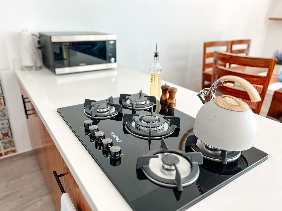 Bienvenido a nuestro encantador refugio en Tonala, un destino único que captura la esencia del arte y la tradición mexicana. Nuestro hermoso departamento es más que un simple lugar para quedarse con la mayor tranquilidad y seguridad. Disfruta de dos habitaciones con balcon, 1 cama king, 1 cama mat. y despiértate entre sábanas suaves y acogedoras, y disfruta de un desayuno en nuestra luminosa cocina, Alexa ¡Bienvenido a tu hogar lejos de casa, donde la magia de Tonala te abraza en cada rincón!