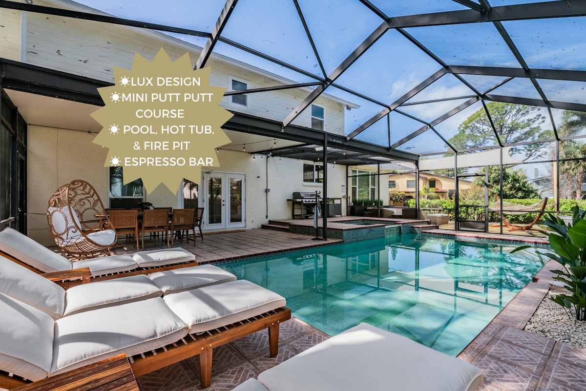 ビーチからわずか数分の場所に🌴ある、フロリダの自然の美しさに囲まれた楽園のような宿泊先。専用ドック、設備の整ったゲームルーム、夕日を眺められるフロリダルーム、居心地のよいコーヒーバーを備えた2ベッドルームのウォーターフロントの宿泊先です。屋外には、ファイヤーピット、バーベキューグリル、6脚のラウンジチェアが備わっています。リラックスしたい、探索したい、楽しみたい、どんな目的でも、この宿泊先ならすべてが揃っています。