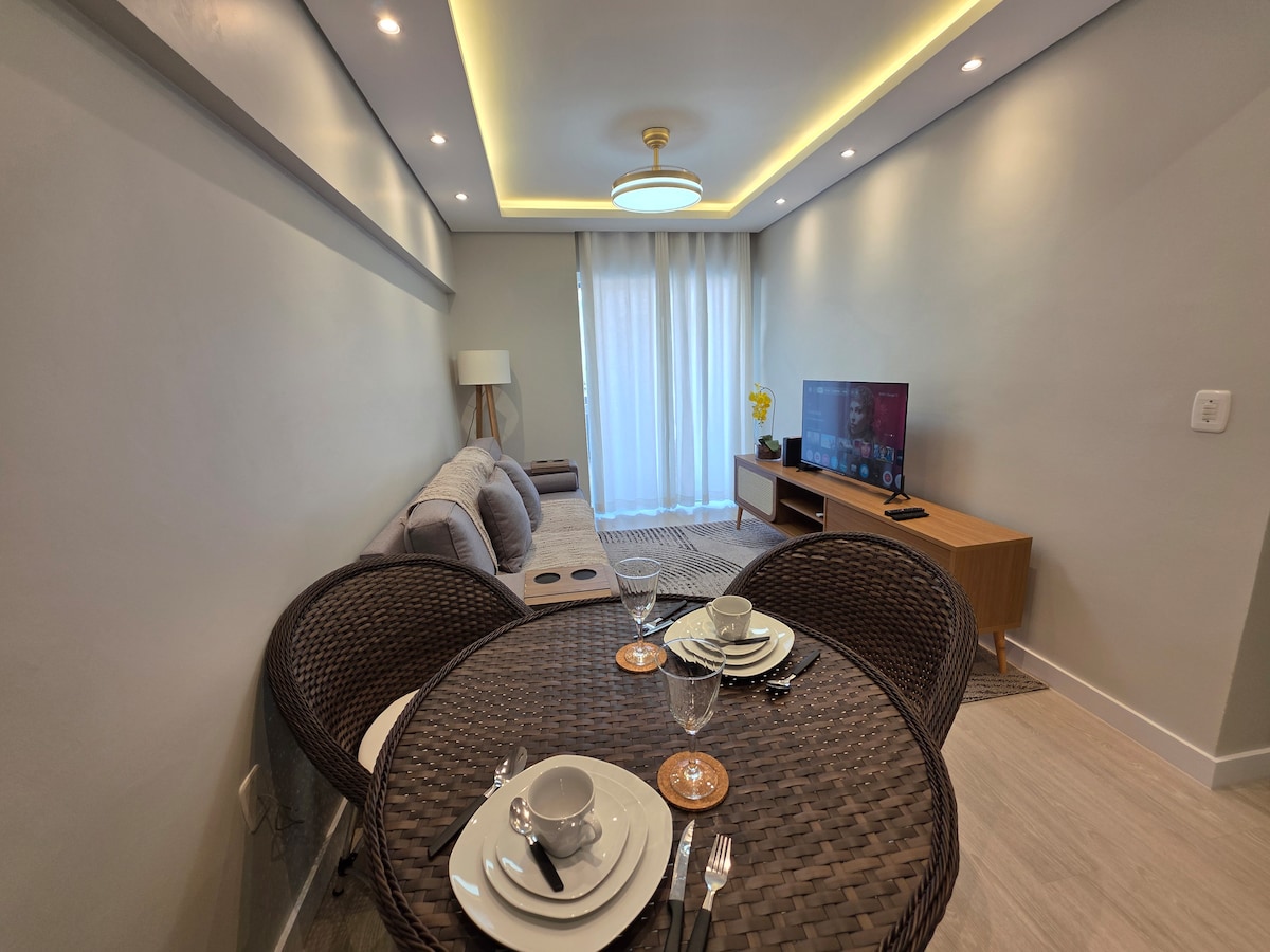 ペットの同伴はお断りします。 24時間対応のフロント。 MDFと花崗岩の新しい家具、長椅子になるソファベッド、エアコン ❄️、ファン、最新技術 55インチテレビ📺と光ファイバーインターネット。 ベッドヘッドのコンセント🌐付きの快適な客室。 🛏️ 洗浄シャワーとヘアドライヤー 🚿 ヘアドライヤー付き。 💇♀️ 食器、カトラリー、鍋、冷蔵庫、洗濯機、乾燥機を備えたフルキッチン。 🍽️ 24時間営業のミニマーケット付きコンドミニアム🛒および 駐車スペース1台分🚗。