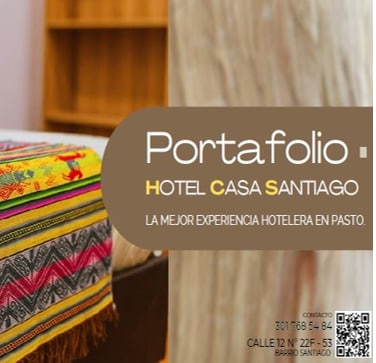 Hotel Casa Santiago, es un espacio diseñado y construido, para trasmitir el espiritu magico de la Ciudad de Pasto - Nariño. Con un toque de historia, plasmado en la restauracion arquitectonica del primer y unico Plalacete de la ciudad. El Hotel Casa Santiago tiene una extrecha relacion con Santuario de las Lajas, compartiendo su mismo constructor, maestro, arquitecto e ingeniero orgullo Nariñense, LUCINDO ESPINOSA.