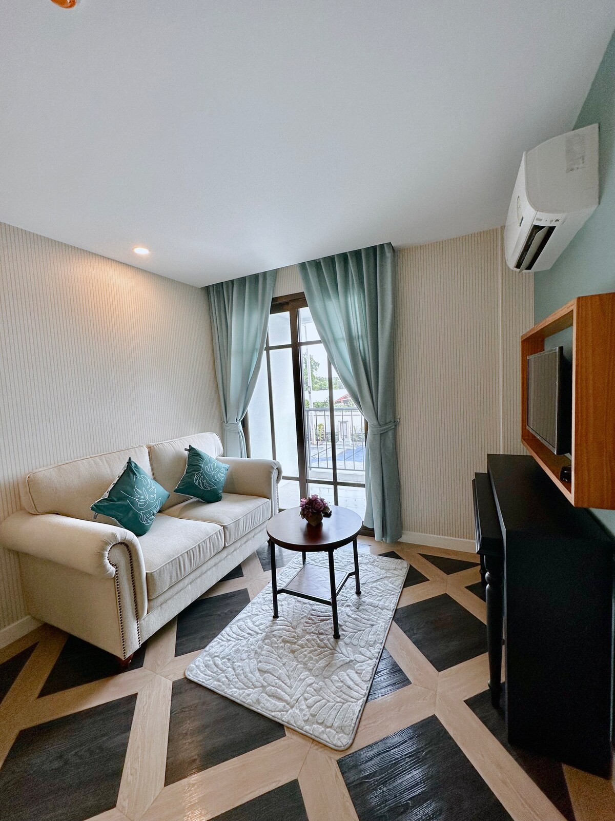 ジョムティアンビーチから800メートルのベネチアスタイルのコンドミニアム。 共用部には大きなソルトプールシステム、ジャグジー、ジムルーム、サウナルームがあります。 私の部屋はすべての設備が揃っています。無料駐車場とセキュリティ。多くのアトラクションからとても近い